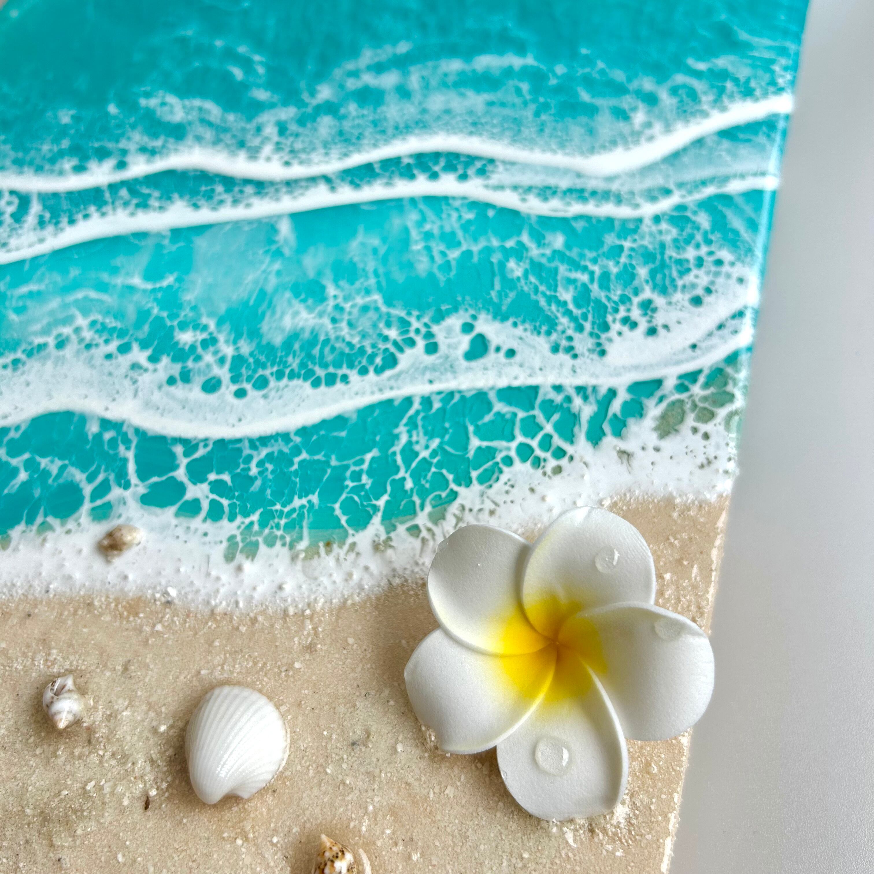 フラダンスをされているとのことだったので、ハワイをイメージしたティファニーブルーの波アート。