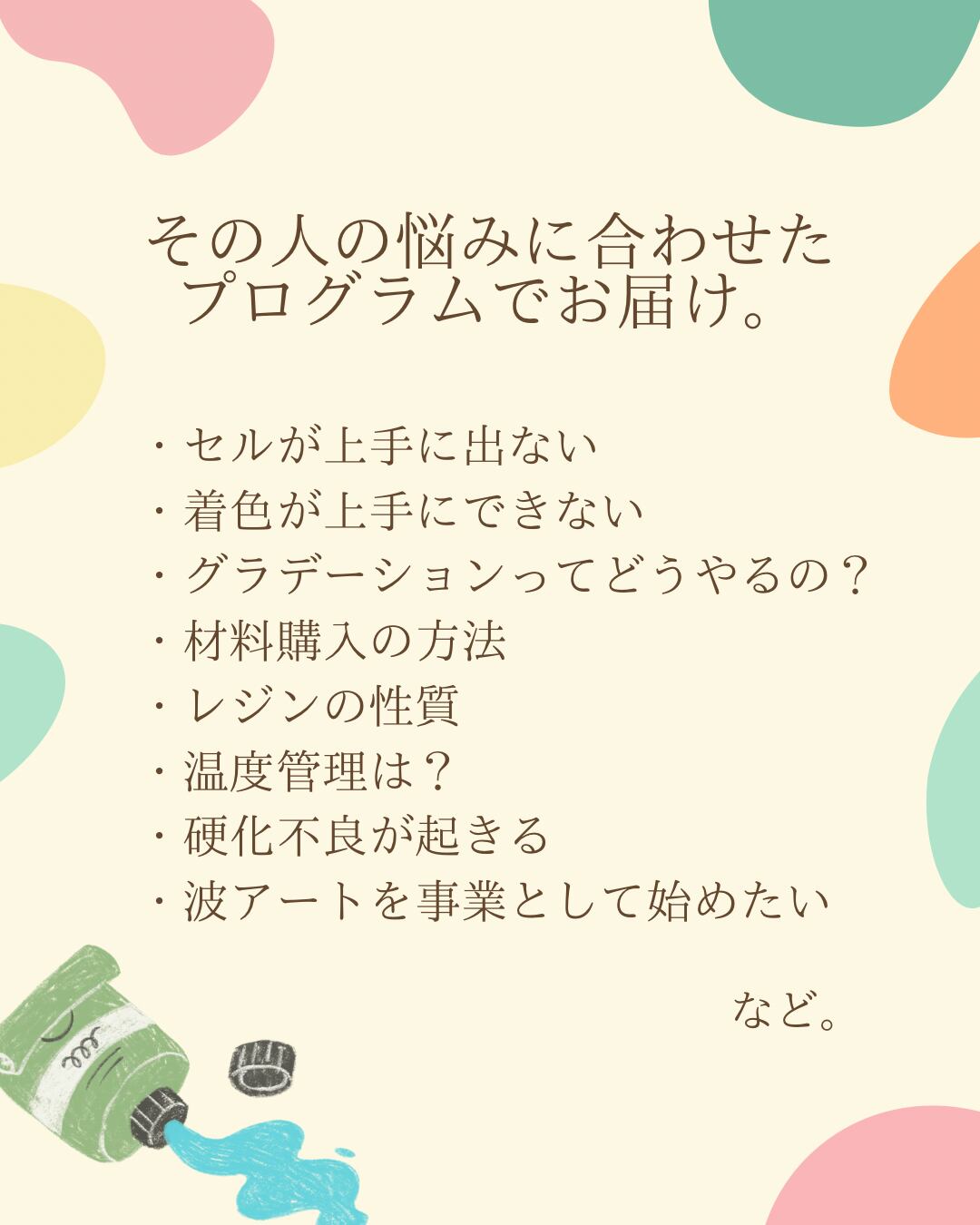 波アートについて、深く学びたい方のプログラムです。悩みに合わせてプログラムを組んでいきます。